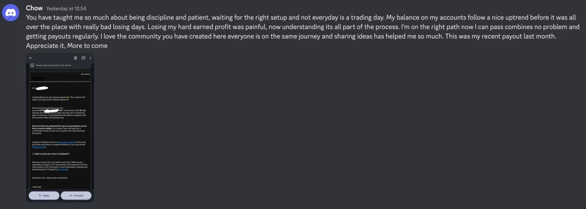 Aaron trades live every morning on Topstep in front of hundreds of traders. His payouts are verified and public. The testimonials come from real students inside his community who went from failing combines to securing their first payouts. Nothing here is theory or hidden.